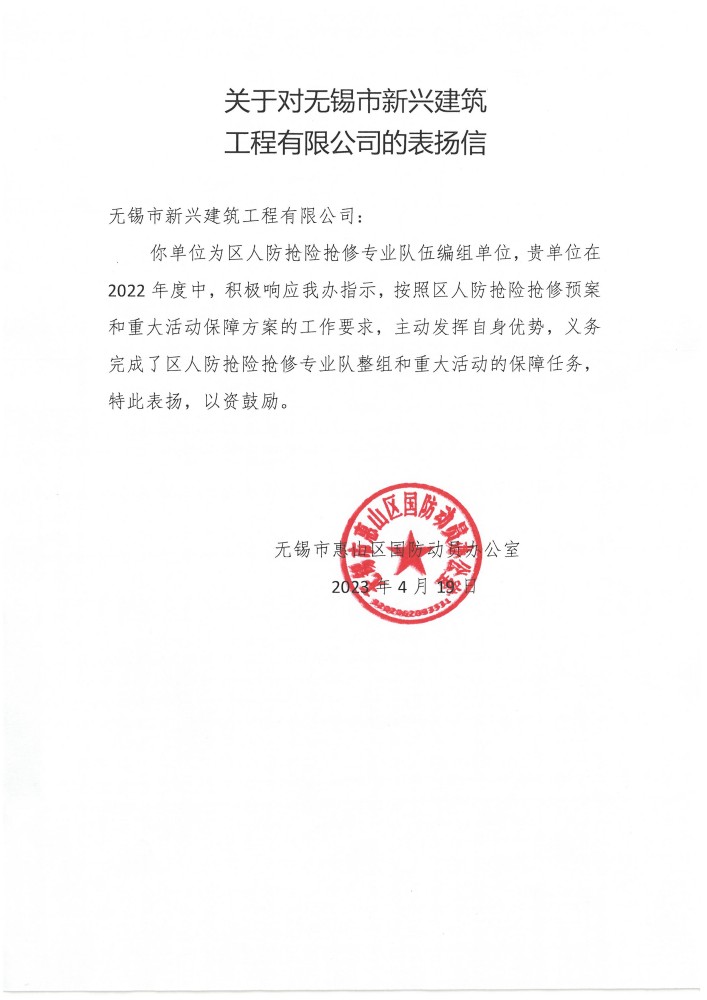 2023.06 2022年度無錫市建筑業優秀會員企業