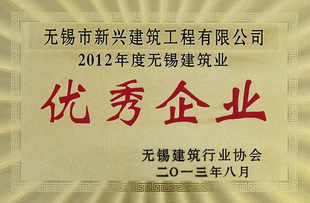 2013.08 2012年度無錫建筑業(yè)優(yōu)秀企業(yè)
